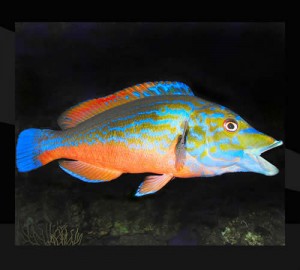 El pez Labrus mixtus es carnívoro y extremadamente difícil de mantener en cautiverio debido al enorme tamaño que llega a alcanzar.
