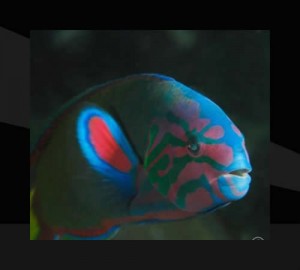Este pez tiene el cuerpo de verde oscuro a azul con unas marcas púrpura claro en cada escama, su cabeza es de verde a azul con rayas irregulares de rosa a violeta. Básicamente retiene su coloración juvenil, aunque los juveniles tienen un punto oscuro en sus aletas caudal y la parte media de su aleta dorsal, mientras que los adultos pueden reconocerse por la gran media luna de su aleta caudal.