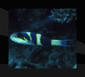 Nombre común en español: Pez labrido de franjas negras